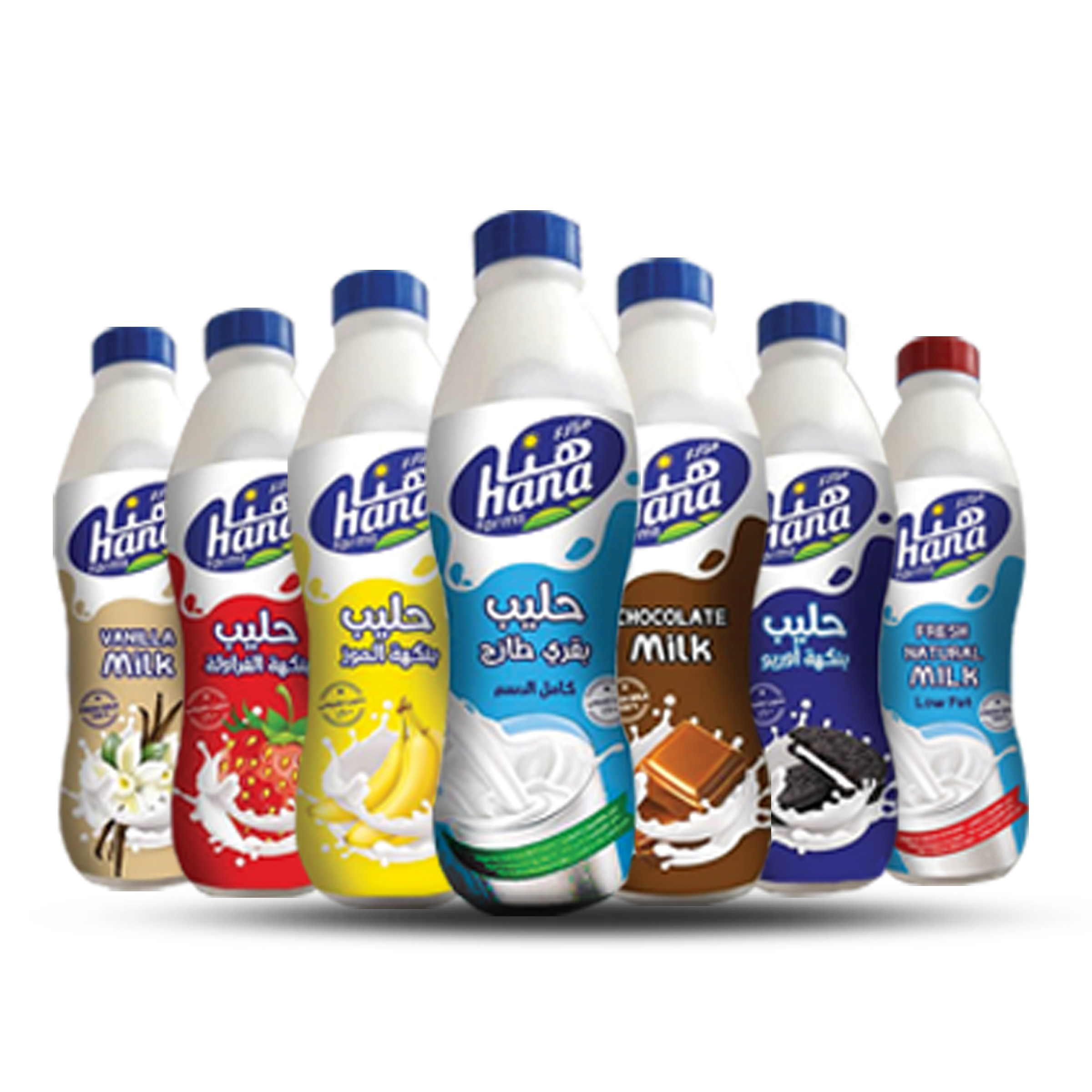 حليب معقم بنكهات مختلفة ( موز، فريز، شوكولا، فانيليا، أوريو ) بعبوات بلاستيكية وعلب كرتونية تتراباك